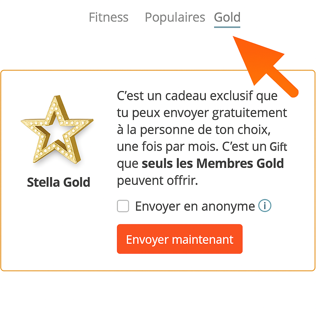 Chaque Membre Gold peut envoyer une seule Étoile Gold par mois, alors choisis bien… et fais-le avec le cœur ❤️