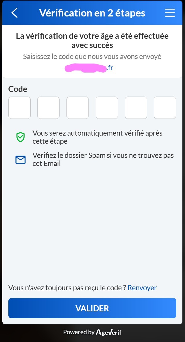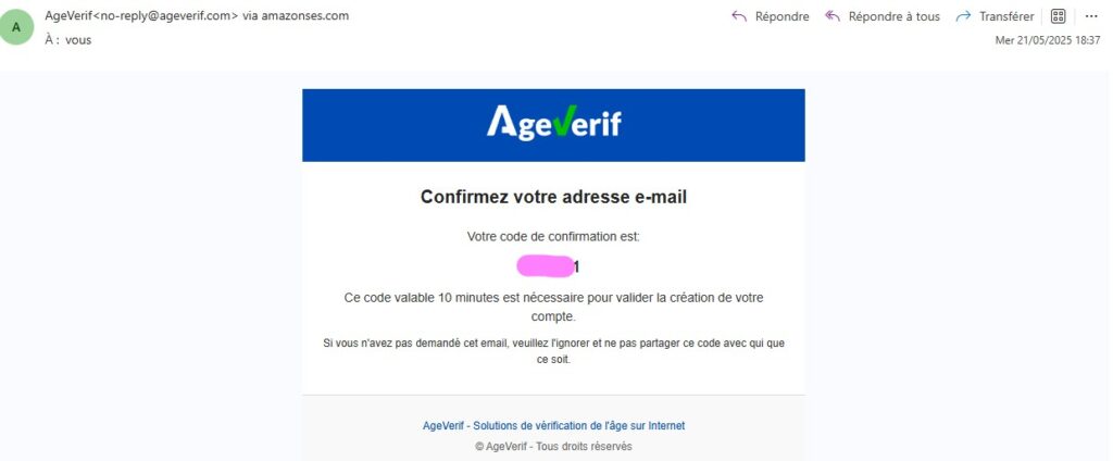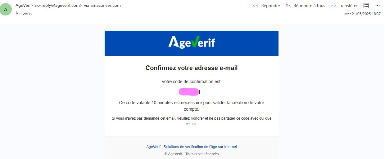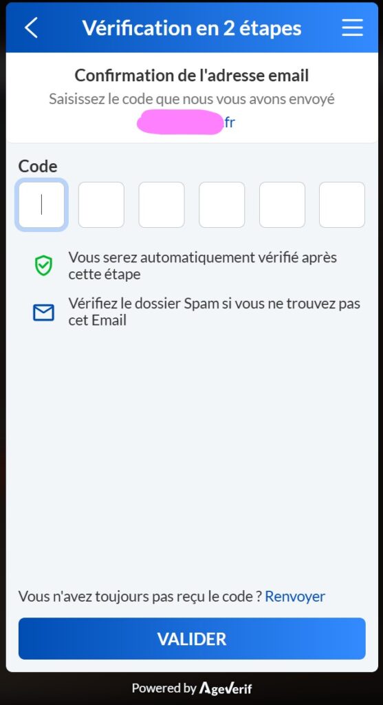 Recommandation: pour éviter de faire l’âge vérification toutes les 60min, créez votre compte sur AGEVERIF en recevant un code de confirmation via votre email ( voir (5)aussi )