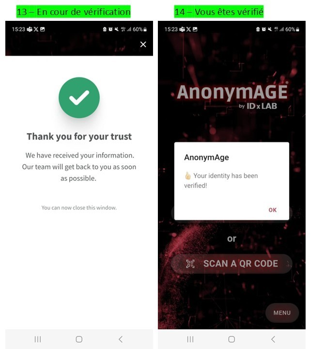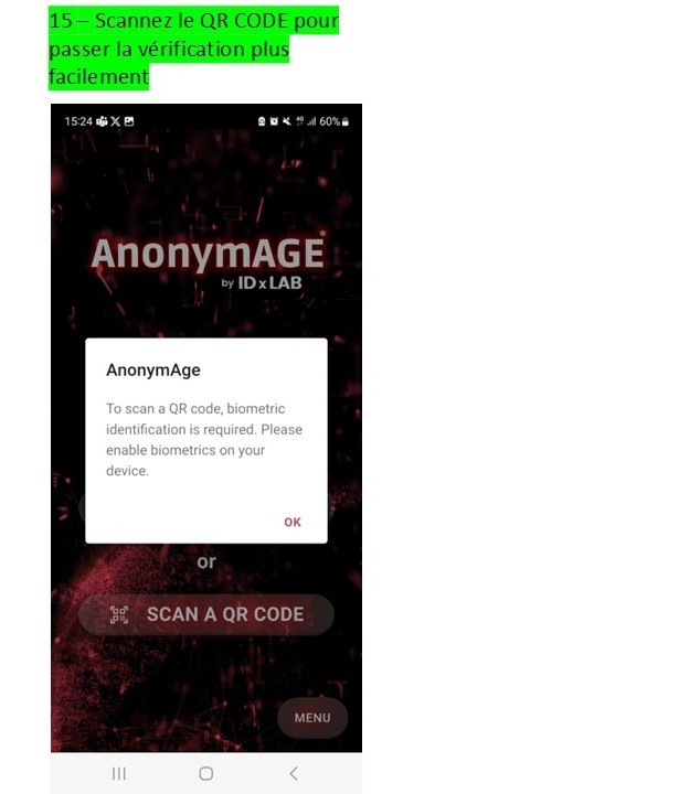 Une fois inscrit sur ANONYMAGE, il vous suffira alors de Scanner le QR CODE donne par AGEVERIF pour passer la vérification plus facilement :